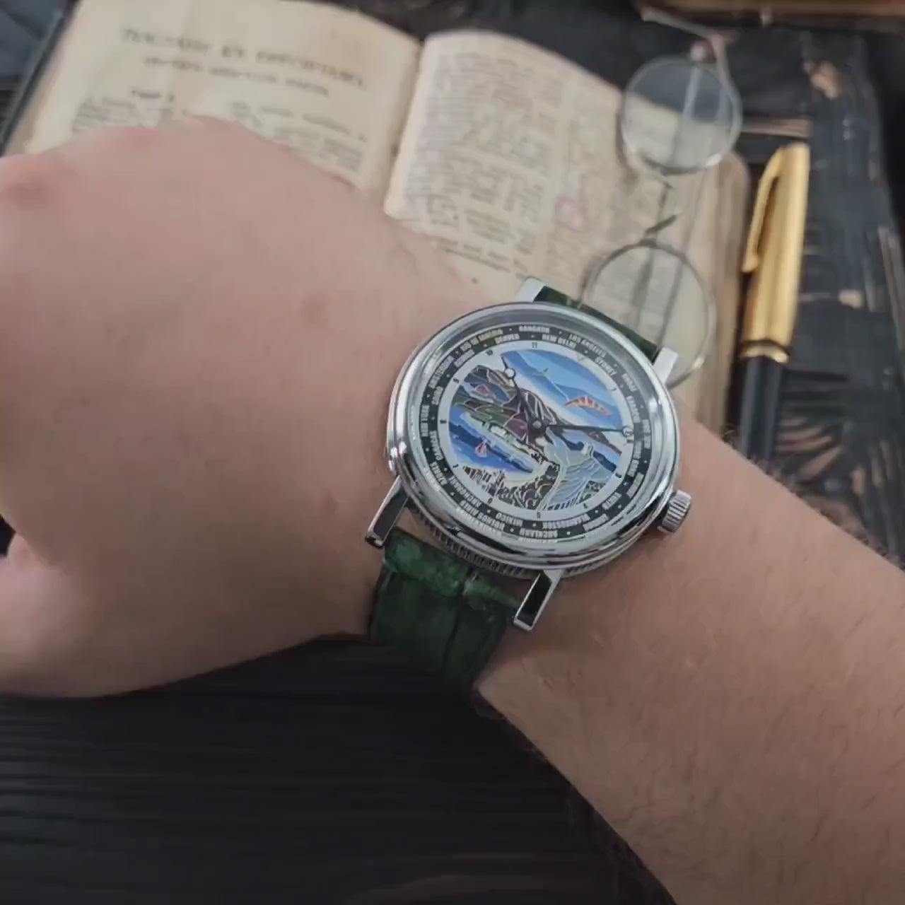 Bu saat, bir saat ustası tarafından elde üretilmiştir. Hazır mekanizma kullanılmıştır. Kadranı dikkatle mücevher emayeleriyle doldurulmuş ve fırında pişirilmiştir.